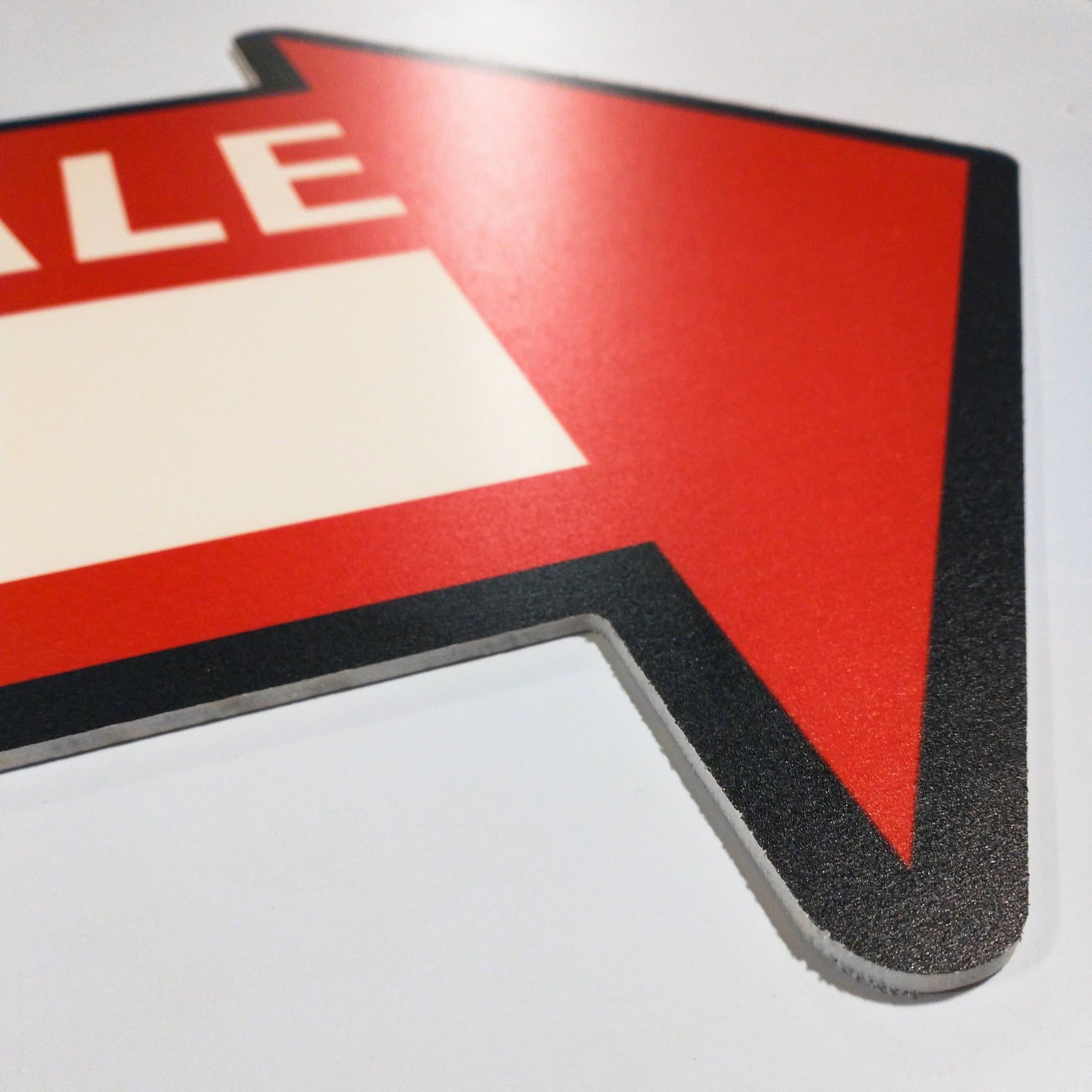 Expanded PVC is made from a combination of polystyrene foam and PVC. It great both indoor and outdoor use. Sturdy and long-lasting, Sintra signs won’t break, crack, dent, or scratch.